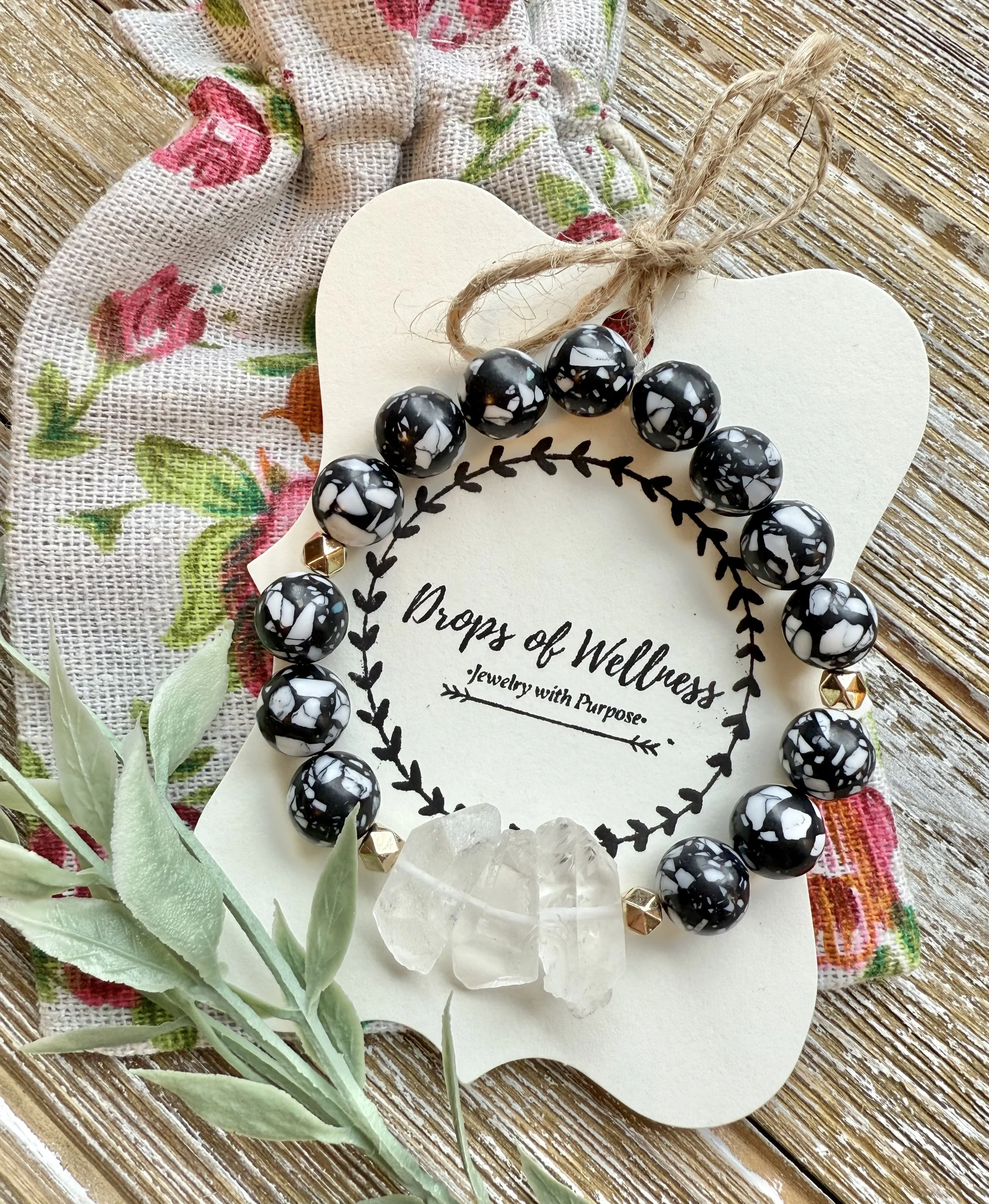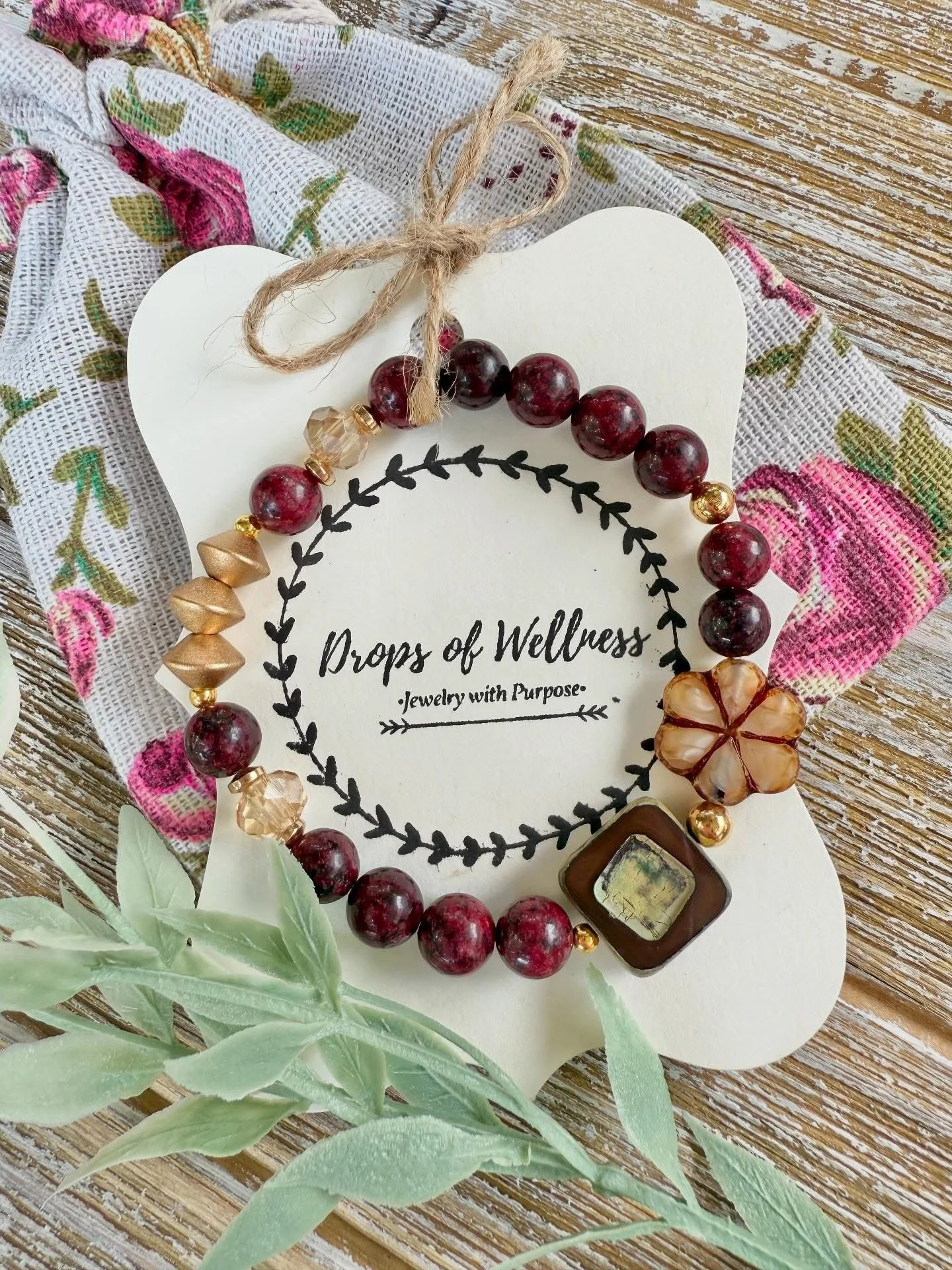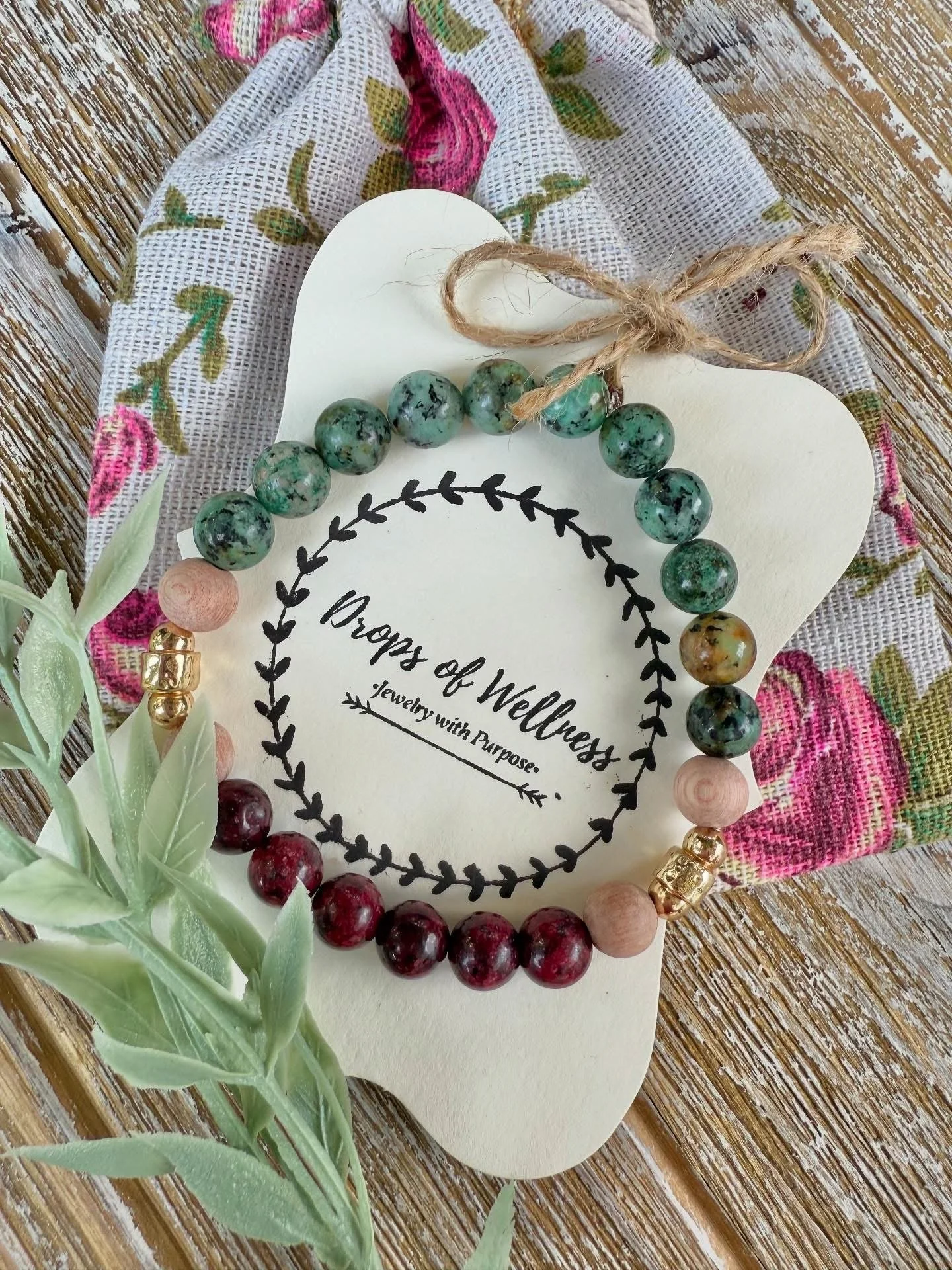 Hand-made in Hartville, Ohio, amazing jewelry that serves two purposes — looking beautiful and improving your health! Place your favorite essential oil in the palm of your hand & then rub the wooden beads or lava stones into the oil, and then slide the jewelry on. So easy!